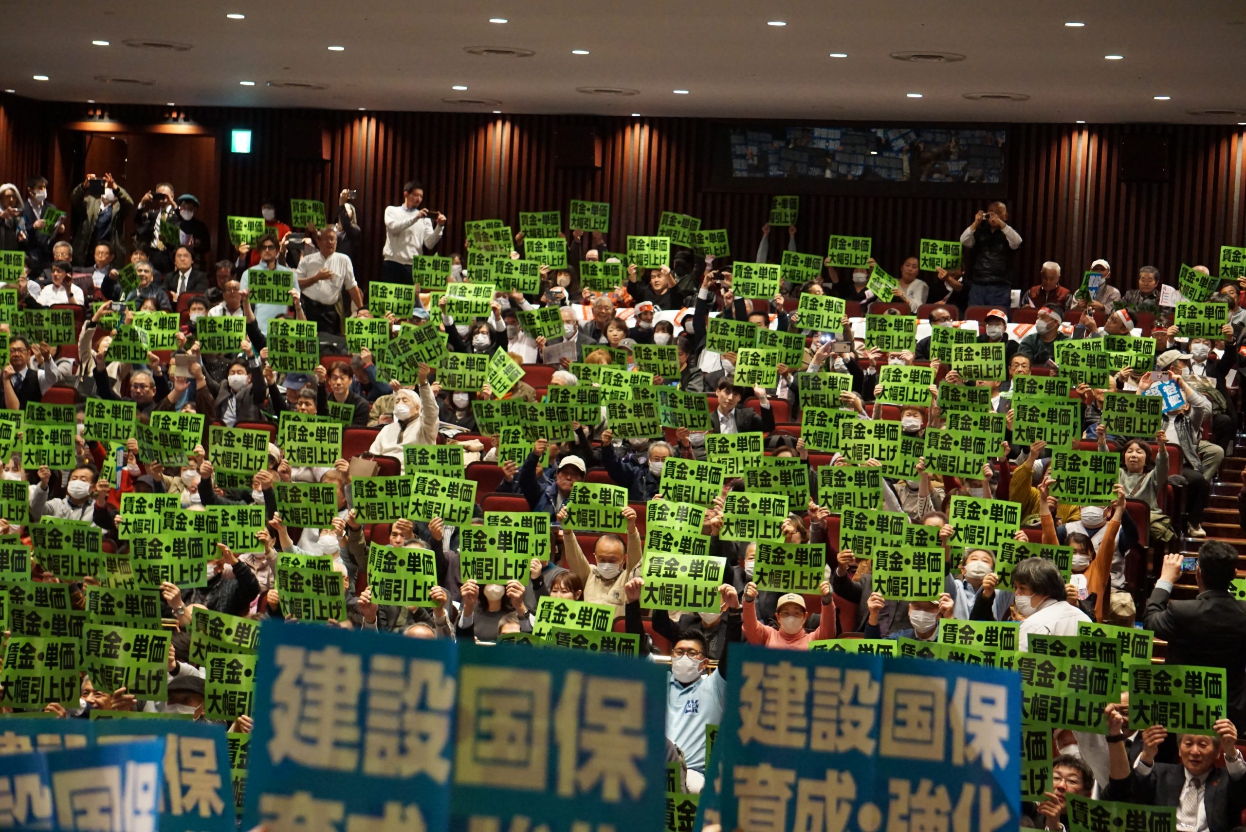 全建総連は11月20日、物価高騰から仕事と暮らしを守り、賃金・単価の引き上げ、来年度予算案に私たちの要求を盛り込ませるため、東京・ニッショーホールに49県連・組合から1152人(11月26日現在)が集まり、予算要求中央総決起大会を開催しました。