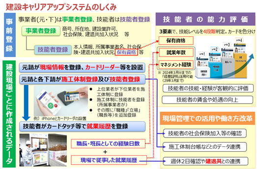 まず国交省より講演。第3次・担い手三法施行に合わせ「CCUSレベル別年収」が設定されたことなど、CCUSの位置付けが高まり、普及の重要性が増したことなどが強調されました。続いて厚労省より、CCUSに関わる助成金などの説明がありました。